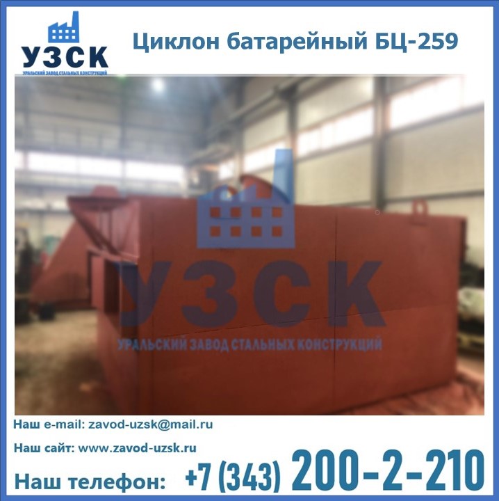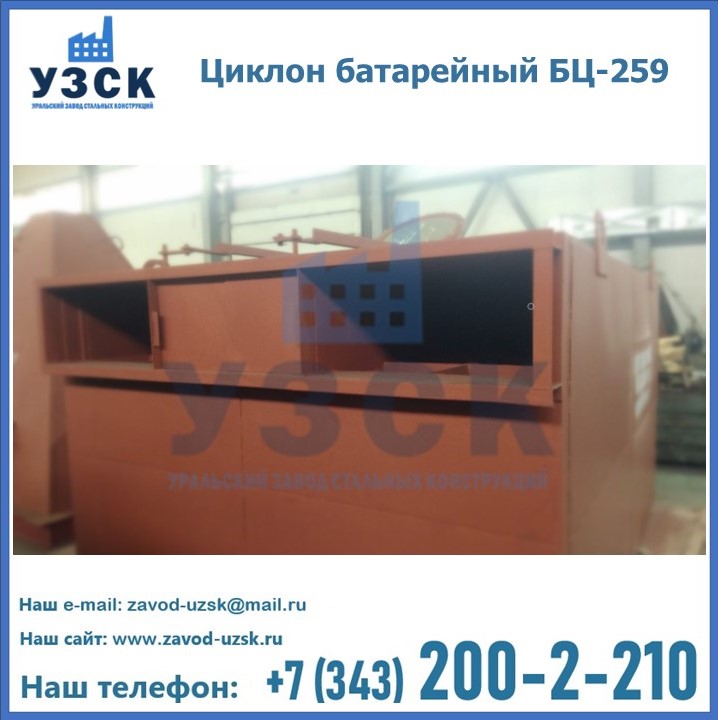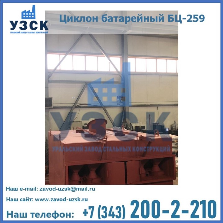 Приобрести качественное оборудование, в том числе, циклоны БЦ-259, можно в компании УЗСК в Костроме. Мы предлагаем долговечную и надежную продукцию по приемлемой цене. Заказать и купить циклоны или другие изделия высокого качества можно через сайт Уральского Завода Стальных Конструкций, или позвонив по указанному в разделе «Контакты» телефону.