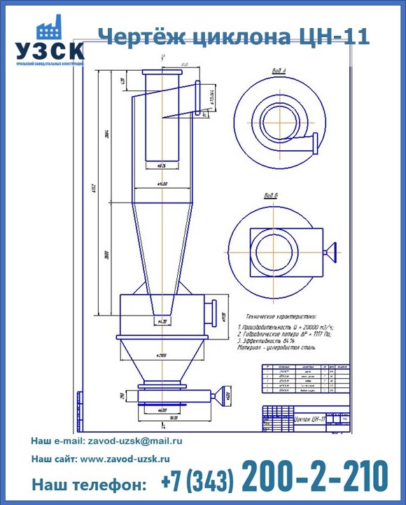Циклоны ЦН 11 можно купить в УЗСК в Костроме. Мы предлагаем самые выгодные условия и оптимальную стоимость для приобретения данного оборудования. Сделать заказ очень просто, требуется только оформить заявку на нашем сайте или позвонить по указанному телефону. УЗСК также занимается реализацией и производственным выпуском циклонов и прочих изделий под заказ, цена на нашу продукцию формируется исходя из индивидуальных требований заказчика и специфики производства. Мы производим циклоны из высококачественной нержавеющей стали (толщина 3-4 мм), при необходимости, толщина конечного изделия может быть увеличена.